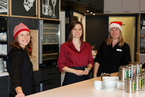 Die Vorbereitungen für den Basar starteten bereits Ende Oktober. Die besten Chancen aus Bildung zu ermöglichen und parallel dazu einen Weihnachtsmarkt auf die Beine zu stellen erfordert von jedem Fachbereich ein hohes Organisationsgeschick. „Das Gute ist die jahrelange Zusammenarbeit unter den Kolleg*innen, die den Adventsbasar zu etwas Besonderem machen“, unterstreicht Mandy Schlichtkrull, Ausbilderin im Bereich Gastronomie und Teil des Veranstaltungs-Teams.