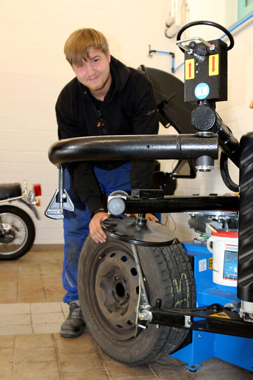 Die neuen Räumlichkeiten verfügen derzeit über ein kleines Reifenlager, eine Hebebühne, einer Montagemaschine für Reifen, sowie einer Auswuchtmaschine. Weiterhin befindet sich in der Halle ein Kraftfahrzeug zur praktischen Unterweisung von Lehrinhalten. „In unserer KFZHalle erlernen unsere Jugendlichen erste Schritte bei der Wartung von Kraftfahrzeugen. Zum Beispiel können derzeit eingebaute Fehler in der Fahrzeugelektronik mit Hilfe eines modernen Diagnosegerätes festgestellt und anschließend behoben werden,“ unterstreicht Thorsten Heldt, Ausbilder im KFZ-Bereich.