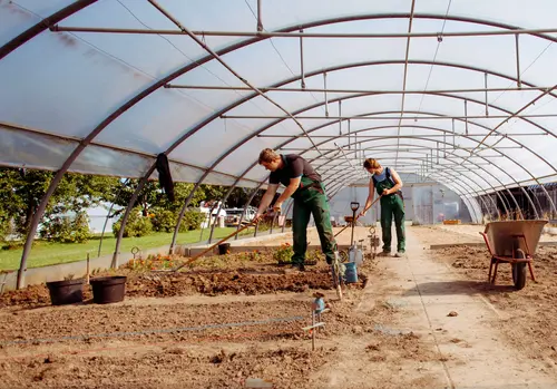 Die computergestützte, vollautomatische und klimatisierte Ausbildungsgärtnerei bietet auf 4 ha, davon 3000 m² unter Glas, modernste Ausbildungspraxis.