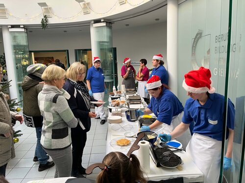 Der Adventsmarkt bot eine Vielzahl an Angeboten zum Genießen, Kaufen und kreativen Mitmachen. Produkte aus Holz, Metall, Textil und Naturmaterialien sowie Leckeres aus Backstube und Küche standen zum Verkauf. Mit viel Liebe und Hingabe wurden sie in den Wochen zuvor von unseren Auszubildenden hergestellt. Es war beeindruckend zu sehen, wie stolz sie auf ihre Kreationen waren und wie begeistert die Besucher*innen von den handgefertigten Artikeln waren.
