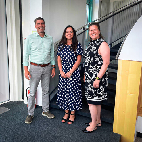 Neben Reha-Ausbildung, Auftragsausbildung und Teilqualifizierung ging Bereichsgeschäftsführerin Stefanie Niemeyer mit den Gästen – insbesondere mit Blick auf den Fachkräftemangel – auch zu den Möglichkeiten in puncto Fachkräfteentwicklung, Erwachsenenqualifikation und zu den Bedarfen der Wirtschaft in unserer Region ins Gespräch. Darüber hinaus informierten sich Klaus-Peter Köpcke und Jana Licht über unterschiedliche Fördermöglichkeiten für Schüler*innen, z. B. über berufsvorbereitende Maßnahmen, aber auch innerhalb der Unternehmensgruppe mit der Trainingsmaßnahme „Sprungbrett“ der NBS.