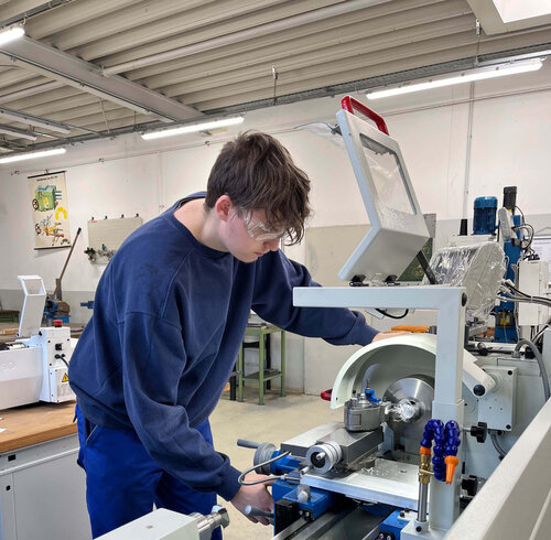 Neu im Einsatz sind zwei Drehmaschinen und eine Universalfräsmaschine, die sowohl für die reguläre Ausbildung als auch für die Auftragsausbildung genutzt werden. Auch die Teilnehmenden in der Berufsvorbereitung (BvB) haben die Möglichkeit, an diesen Maschinen wertvolle Erfahrungen im Berufsfeld zu sammeln. Und um das Lernen für sie noch interessanter zu gestalten, wurde außerdem in zwei Tischdrehmaschinen und eine Tischfräse investiert.