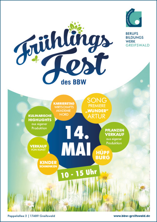 Das Frühlingsfest ist eine Veranstaltung für die ganze Familie. Auf der Bühne sorgen die Tänzer*innen vom Ostseetanz Greifswald, die Pomeranian Brass Band und die Mitarbeiter*innen des BBW für Abwechslung. Die kleinen Besucher dürfen sich neben der beliebten Pony-Reitbahn über Arne Liefert, auch bekannt als Arne Feuerschlund, freuen. Zusätzliche Attraktionen wie Kinderschminken oder Fahrradparcour runden das Programm ab. Mitmachaktionen fordern das Geschick jedes Einzelnen, egal ob beim Melken, Basteln oder beim Handwerk.
