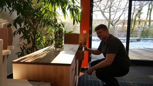 Ein Holzengel als Teelichthalter, Marmeladen aus der Hauswirtschaft, genähte Tischdecken, Stollenvielfalt – die Palette an bunten Weihnachtsprodukten aus der BBW-Weihnachtswerkstatt ist einzigartig, wie die Jugendlichen selbst die sie fertigen. Elias Kunze, Teilnehmer im ersten Lehrjahr zum Zweiradmonteur hat in diesem Jahr die Rolle des Weihnachtsmannes übernommen. Nicht nur die kleinen Gäste, auch die Erwachsenen durften eine Kleinigkeit aus dem Geschenkesäckchen raussuchen. „Ich schlüpfe gerne in andere Rollen. Für mich ist das BBW ein vielfältiger Ort an dem ich neue Fertigkeiten erlerne, meine Persönlichkeit stärken und auch neue Dinge ausprobieren kann. Als Weihnachtsmann ein strahlen in die Augen der Kinder zu zaubern ist für mich unbezahlbar“, betont Elias Kunze.