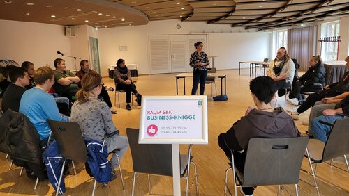 Bewerbungstipps kamen von Personaler*innen, man konnte den Erfolgsgeschichten ehemaliger Teilnehmender lauschen und mit ihnen ins Gespräch kommen. Die Bundesagentur für Arbeit hat die Kunden-App vorgestellt und deren Nutzung erklärt.