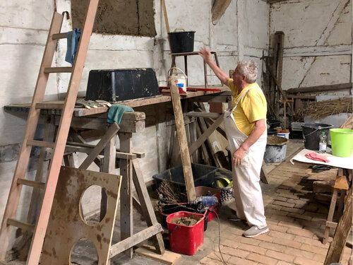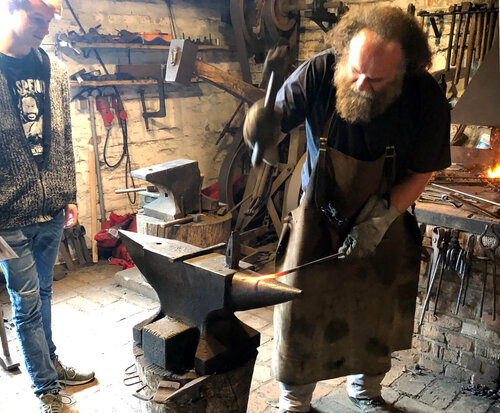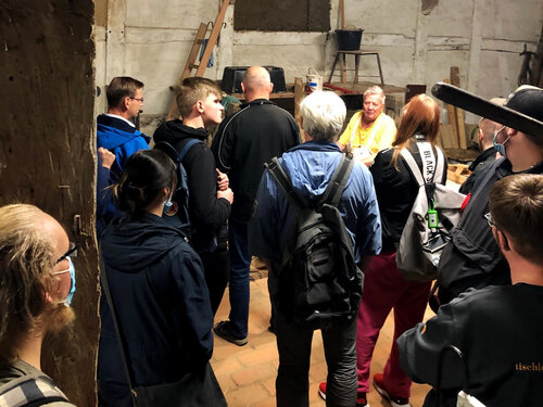 Ein Handwerk zu erlernen umfasst weitaus mehr als die reine Lehre. Die Teilnehmer*innen aus dem Fachbereich Holztechnik lernen die Handwerkszunft von Grund auf. Wie könnten die Jugendlichen das besser als bei einer Führung durch das Freiluftmuseum. Wie genau funktionierte der klassische Lehmbau? Was begeisterte Handwerker*innen seit jeher an den Berufen Zimmerer, Tischler*in und Holzbearbeiter*in? Ein Schmied gab Antworten und vermittelte den Teilnehmer*innen ein zeitgemäßes Bild des Handwerks. „Der Kontakt zu Handwerksmeistern und die Verbindung zur Geschichte des Handwerks ist wichtig, um ein Gefühl für den Beruf zu bekommen“, betont Holger Lobitz, Ausbilder aus dem Fachbereich Holztechnik.