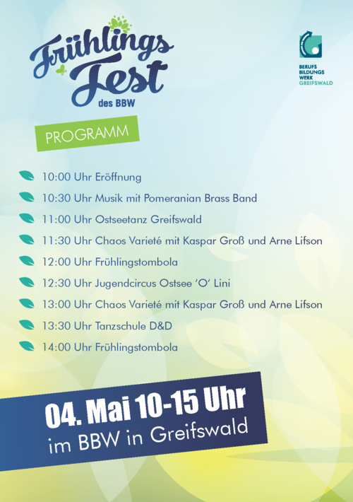 Das Frühlingsfest verspricht einen Tag voller Freude, Unterhaltung und Einblicke in die vielfältigen Talente und Fertigkeiten unserer Teilnehmer*innen in der Pappelallee 2. Wir freuen uns darauf, gemeinsam die Vielfalt erlebbar zu machen.