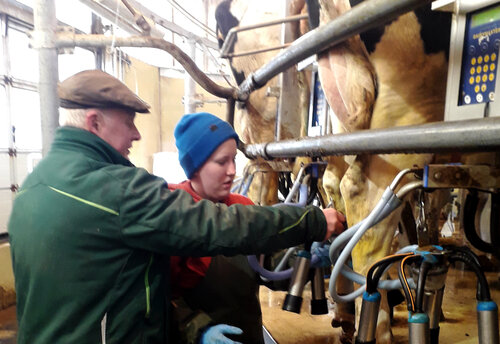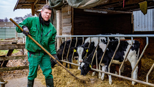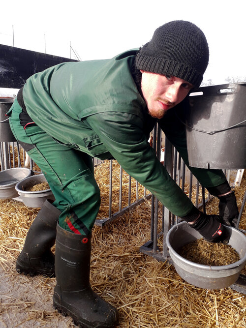 „Landwirtschaft ist Leidenschaft für Natur, Umwelt, Tier und Technik“ lautet das Motto des Wolgaster Unternehmens Peeneland Agrar GmbH. Egal ob Melken oder bei der Fütterung von Kühen – die artgerechte Haltung von Tieren will gelernt sein. Die Teilnehmer*innen aus dem ersten Lehrjahr genießen sichtlich die Arbeit auf dem Hof. Eine willkommene Abwechslung zu den theoretischen Inhalten. Daneben können die angehenden Fachpraktiker*innen auf dem zweiten Kooperationshof in Groß Ernsthof einen Einblick von der Aufzucht mit hochwertigem Futter bis hin zur Schlachtung erhalten.